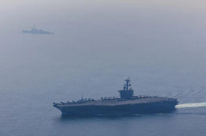 “亚伯拉罕·林肯”号航母打击群在阿拉伯海。(图源:欧新社)